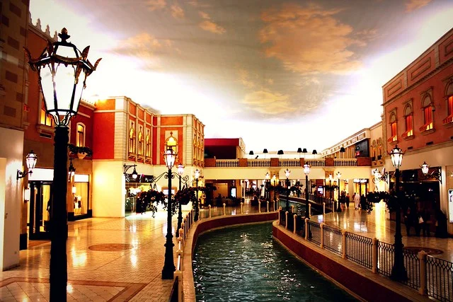 يُعد فيلاجو مول في الدوحة، قطر، وجهة تسوق وترفيه فريدة مستوحاة من طراز المدن الإيطالية، ولا سيما البندقية. يبدأ الانطباع الأول عند دخول الزوّار عبر قناة داخلية طويلة تطفو عليها قوارب الغوندولا، مما يضفي لمسةً بندقية أصيلة. يضم المول مجموعة واسعة من المتاجر الراقية للأزياء، إضافةً إلى دور سينما، ومناطق مخصصة للطعام، وحتى حلبة للتزلج على الجليد. صُمم هذا المركز ليكون أكثر من مجرد مكان للتسوق؛ فهو وجهة عائلية متكاملة تجمع بين الترفيه والراحة والتجربة الثقافية المميزة.